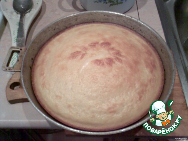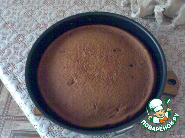 Вылить тесто, в смазанную раст. маслом форму,испечь первый корж. Он будет шоколадный. Пусть пока он остывает.