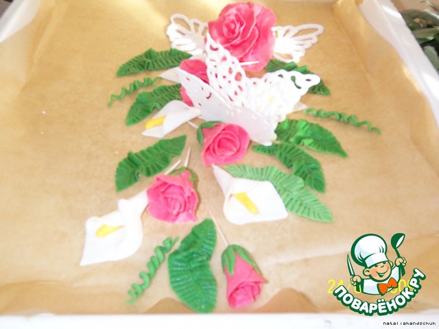 Это бабочка из айсинга (белок с сахаром). Если кому-то интересно как это делается, спрашивайте, я вам всё напишу или выставлю отдельным рецептом (если будет много желающих)...