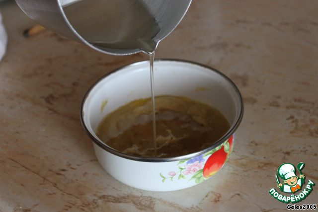 Желатин распустить на водяной бане (или в микроволновке), смешать с сиропом и добавить желтый краситель. У меня гелевый, 3-4 капли достаточно.