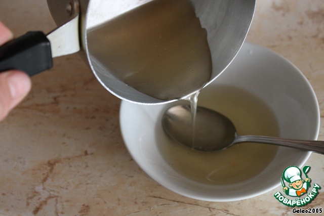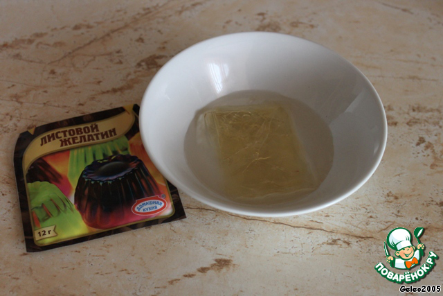 Замочить 3 пластинки желатина в 50 мл воды на 10 минут.