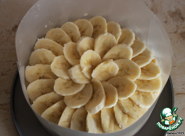 Оставшиеся 2 банана нарезать тонкими красивыми ломтиками.
