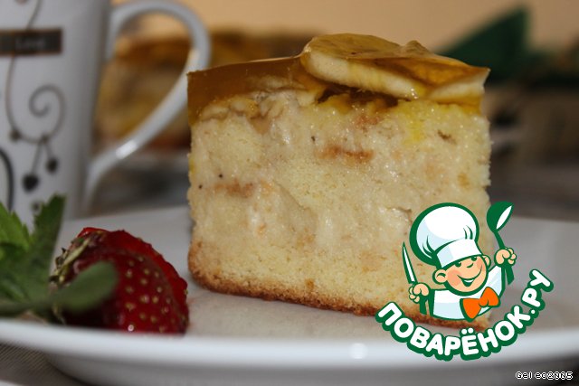 | Моя почти родственница пребывает в интересном положении. Посему, иногда у нее появляются разнообразные гастрономические желания. Накануне вечером она пожаловалась мне, ей так хотелось торта, а в магазине такого как на зло не было! В детстве она любила и часто ее родители баловали бисквитным тортом с кремом, украшенным бананами в желе. А сейчас нет нигде такого! «Ничего, надо поспать и все пройдет»- с такой тоской в глазах сказала она, что я аж чуть не расплакалась! Я лично такого никогда не видела и не пробовала, но твердо решила изобразить нечто подобное. Получилось!!! Такая нежность, сама не ожидала. |