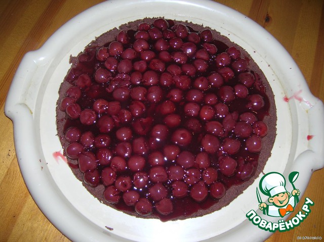 Вишню слить, сок вскипятить с 1 щепоткой ванилина и загустить 20 гр крахмала.