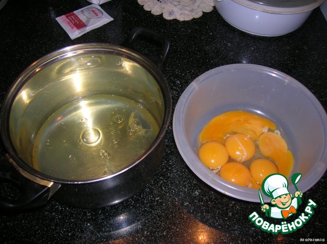 Взбить белки с сахаром и 1 щепоткой ванилина.