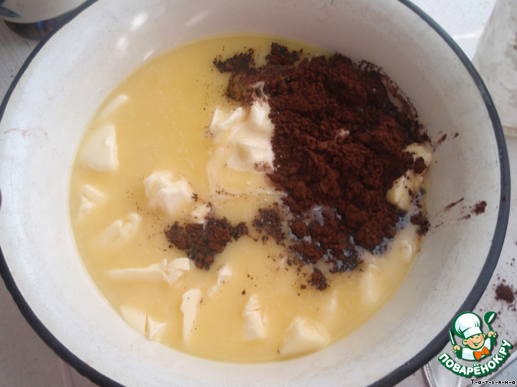 Легонько перемешиваем ложкой, чтобы какао не разлеталось.