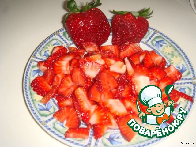 Я еще такой цветок,почти что аленький водрузила на него:-D .И присыпала кокосовой стружкой весь верх.А вообще я часто в тортике вырезаю по середине кружок,а потом уже кусочки-сигментики.Этот кружок-серединка у нас на сладкий остаток остается всегда,она самая вкусная.И вечное соревнование у сынка с мужем-кто успел,тот и съел!В данном случае ее лучше прикончить сразу-клубника заветрится!Лучше сразу съесть!