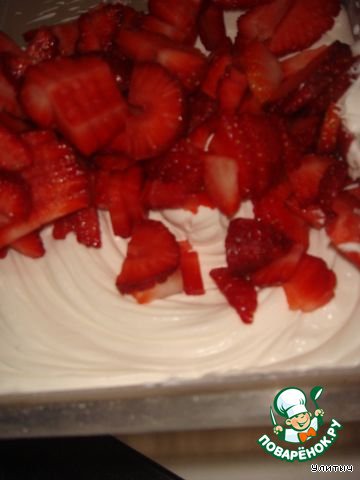Крем:взбиваем сливки с сахарной пудрой,добавляем по столовой ложке маскарпоне,продолжаем взбивать до получения однородной массы.