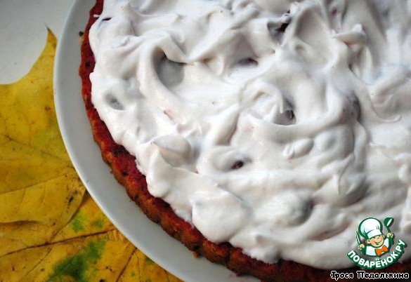 Нижний корж пропитать вишневым соком.