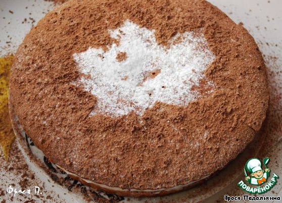 Торт посыпать через ситечко какао и тертым шоколадом.