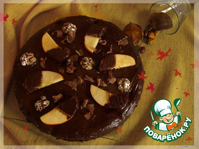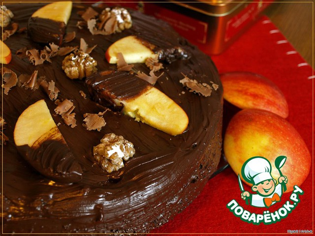 Через полчасика можно украсить тортик шоколадными яблочными дольками, орехами, шоколадной стружкой.