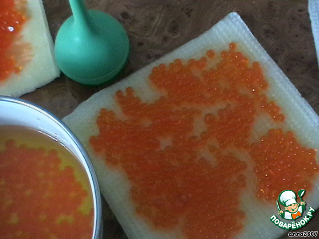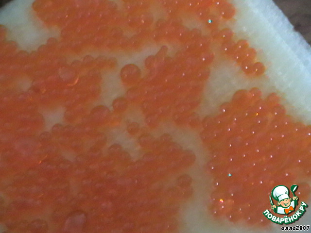 | Вот делала тортик, хочу и с вами поделиться. На сайте такого не нашла. Чего добру пропадать :) Угощайтесь "бутербродиком с красной икрой". |