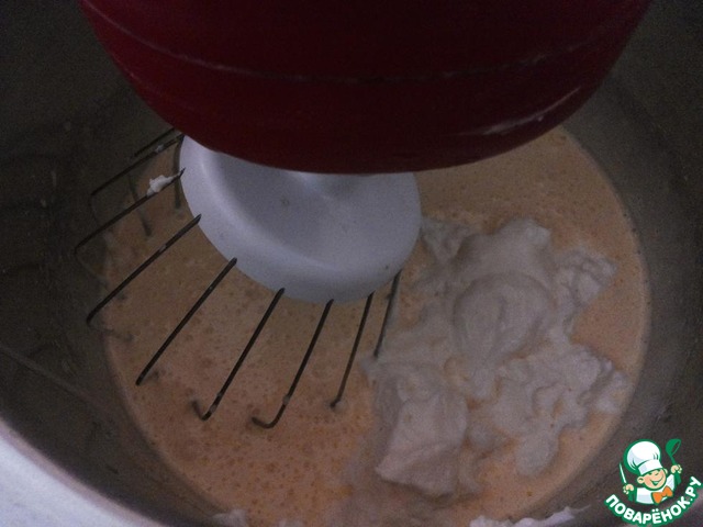 Продолжая взбивать, по очереди добавляем сгущенное молоко,