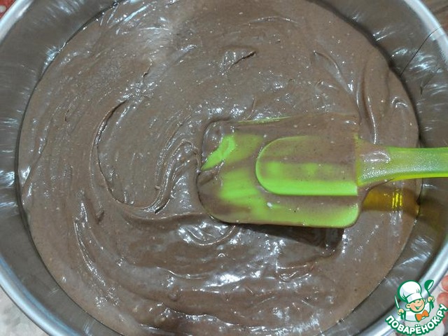 Готовое тесто вылить в форму и разровнять лопаткой.