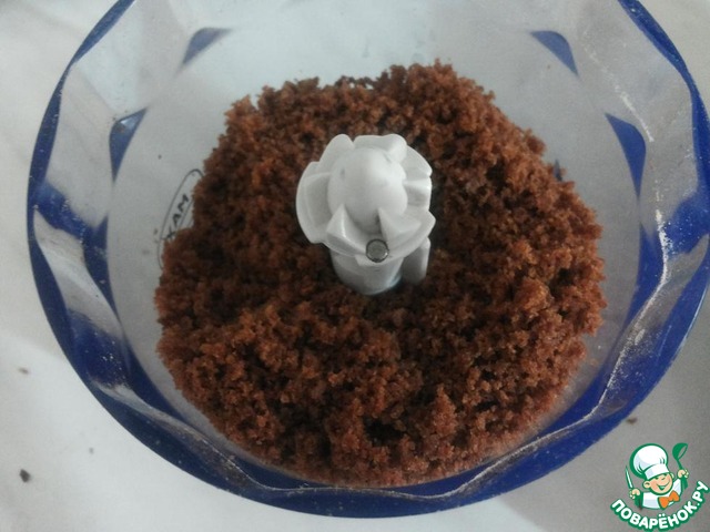 У остывшего бисквита срезать все корки очень тонким слоем ( бока, верхушку, дно). Но так как у меня был "вулканчик", я его только срезала и измельчила в крошку.
