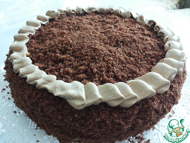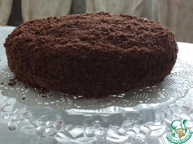 Обсыпать готовый торт крошкой. Накрыть целлофаном и на ночь поставить в холодильник, чтобы он пропитался.