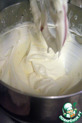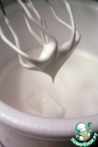 Белки со второй половиной сахара взбиваем до крепких пиков.