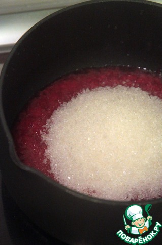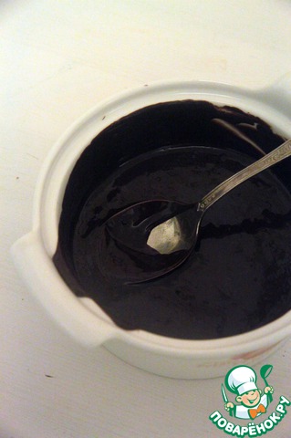 Приготовим крем: смородину измельчите в блендере в пюре, добавьте сахар, красное вино (в оригинальном рецепте ликер крем-де-кассис), доведите до кипения, добавьте растопленный шоколад и перемешайте.
