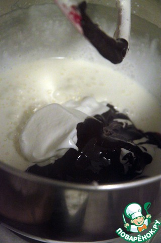 Сливки взбейте до устойчивый пиков, соедините с остывшей смородиново-шоколадной массой.