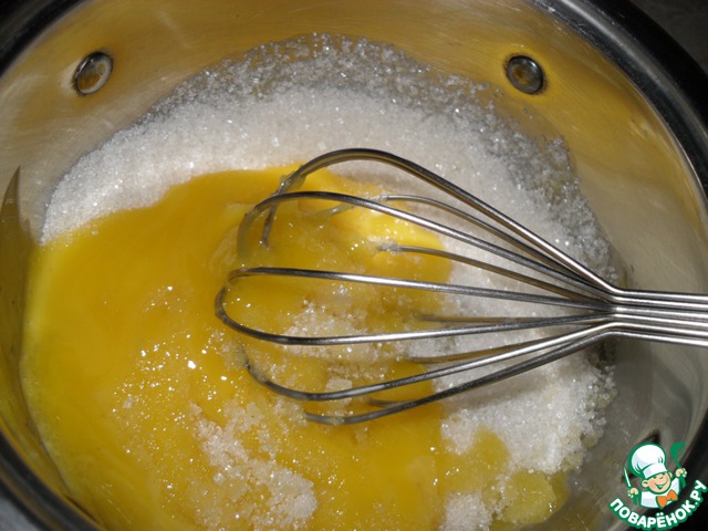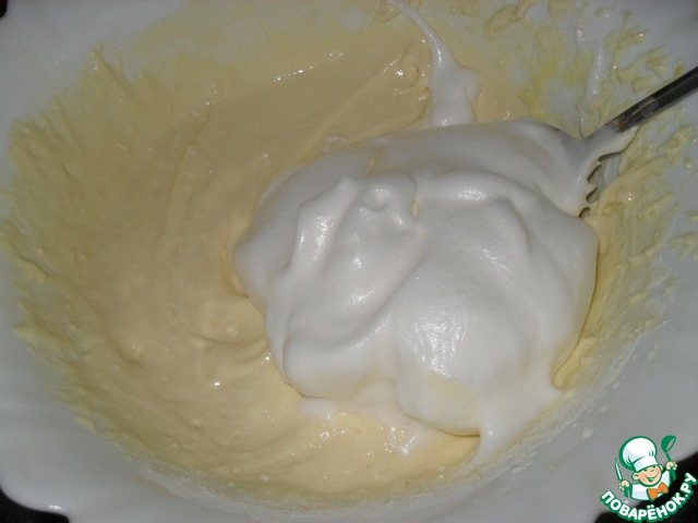 6 белков взбить с 150 г сахара и ввести в тесто.