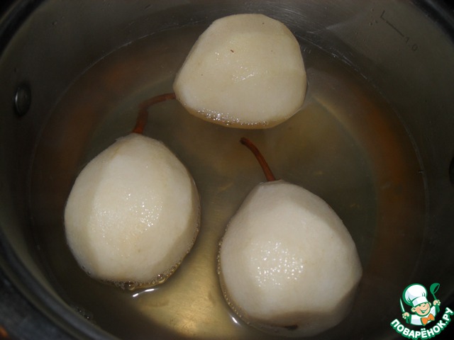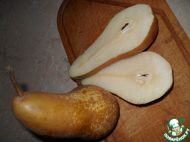 Теперь займемся грушами: 3-4 груши ( не слишком маленькие) очистить от кожицы, разрезать вдоль и удалить сердцевину.