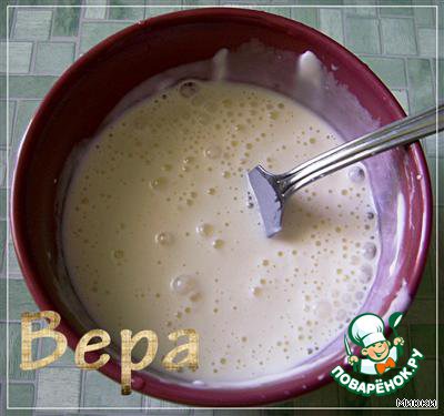 Безе: взбить охлажденный белок с 2 ст. ложками сахара, в гладкую блестящую массу.