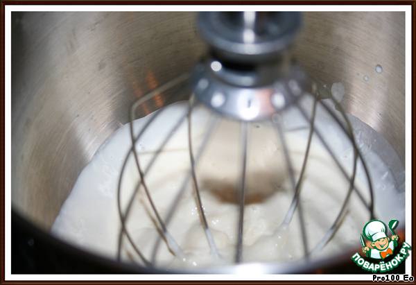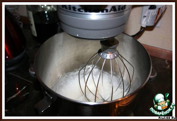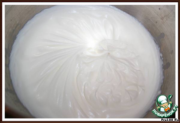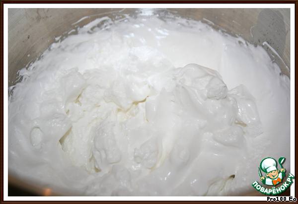 Взбитые белки аккуратно кладем сверху, на тесто, очень аккуратно, я использовала кондитерский мешок.