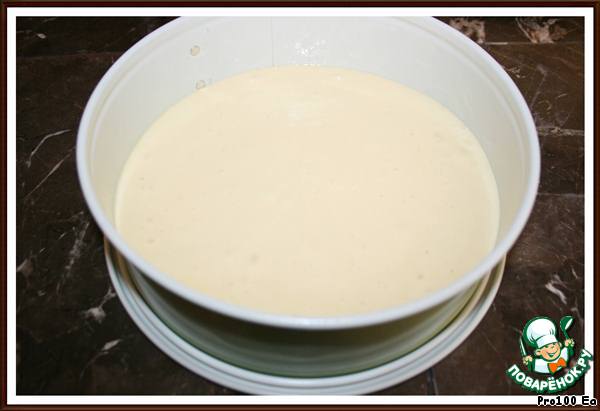 Я поставила чуть больше половины тесто в разъемную форму с диаметром 25 см.