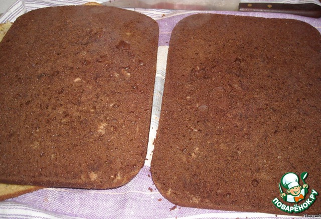Хотя, судя по последнему опыту,лучше испечь из этого теста 4 коржа, чем разрезать два.