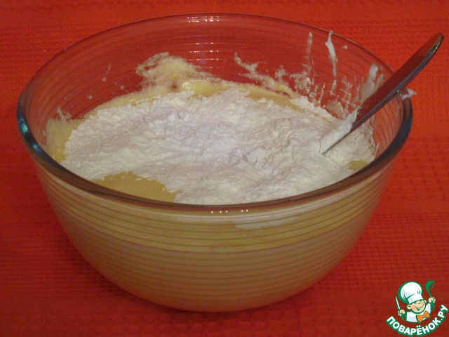 Осторожно помешивая, всыпать муку, крахмал и оставшийся сахар.