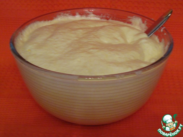 Отделить желтки от белков. К желткам добавить половину нормы сахара, растереть добела.