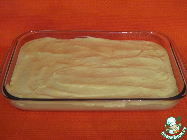 Вылить тесто в смазанную маслом форму и выпекать бисквит при температуре 200 градусов около 20 минут.