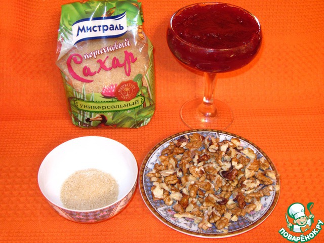 Поварить повидло с сахаром 5 минут, добавить измельченные орехи.