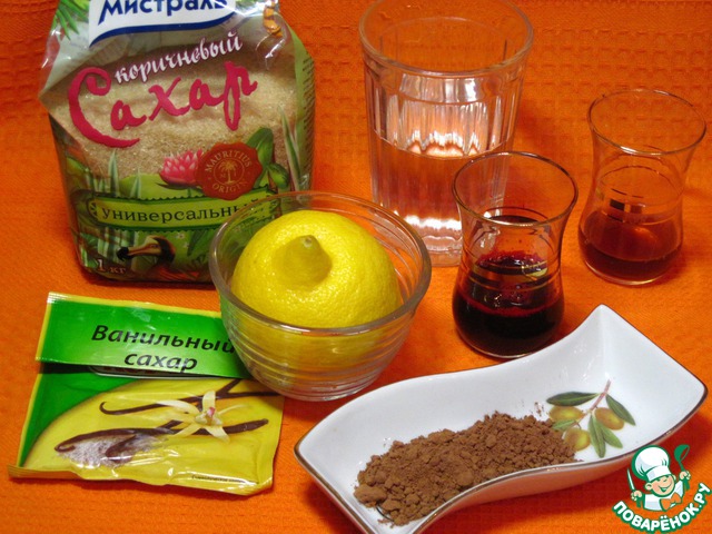 Добавить в остывший сироп коньяк, цедру лимона, свекольный сок, какао, ванильный сахар, перемешать.