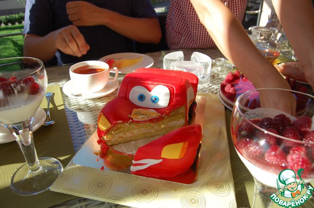 | Хочу поделиться опытом, а именно оригинальным способом оформления, в данном случае детского торта "Маквин", так полюбившегося мультяшного героя многим малышам. В этом рецепте, ставлю акцент, именно на том, как сформировать из бисквита "Тачку", а сам торт может быть практически любой! |