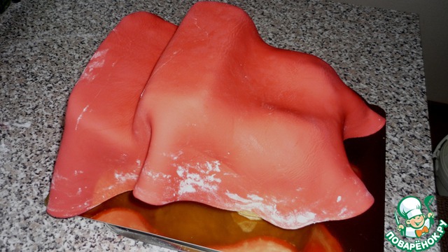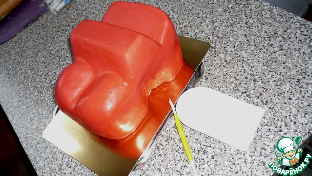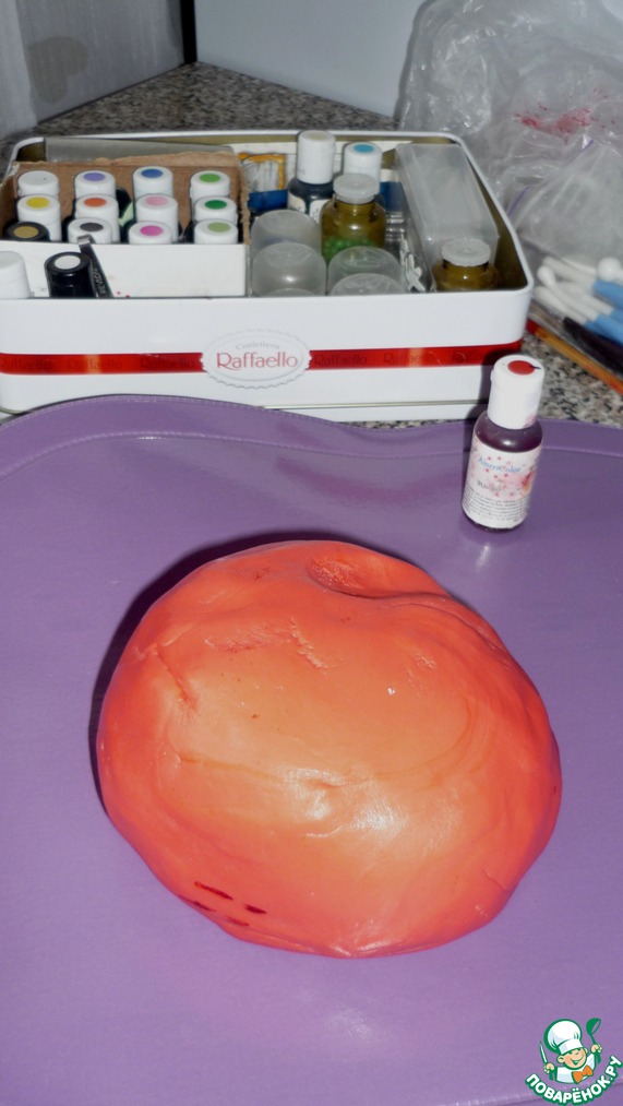 Мастику окрашиваем пищевой краской нужного нам цвета, в данном случае красный... я пользуюсь профессиональной кондитерской мастикой IPSA...