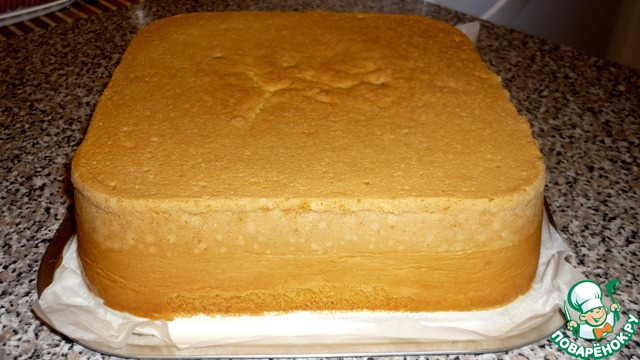 Первое, что нам понадобится, - это хорошее настроение :) без которого просто невозможно сотворить чудо превращения обычного бисквита в мультяшный персонаж, ну и, конечно же, сам бисквит! У каждого имеется свой любимый, проверенный рецепт, хочу только отметить, что бисквит должен быть квадратной или прямоугольной формы, у меня в данном случае бисквит квадратной формы диагональю 23 см.