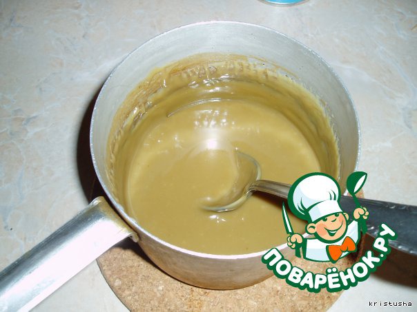Масло растопить, мед(если не жидкий) растопить.все ингредиенты(сгущенку. масло и мед) вылить в кастрюлю с толстыми стенками,иначе смесь будет пригорать!!!. На среднем огне варим, постоянно помешивая до карамельного цвета , полученная смесь должна быть не жидкой. Варить минут 15.