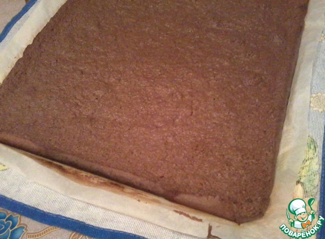 Убрать в холодильник, чтобы рулет пропитался кремом.