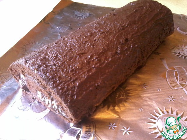 Готовый рулет можно дополнительно покрыть шоколадной глазурью или просто посыпать сахарной пудрой.
