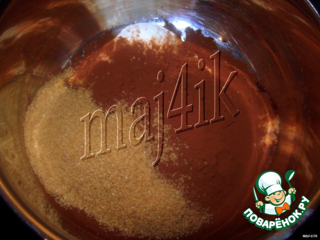 Не переставая взбивать, постепенно добавить коричневый сахар.
