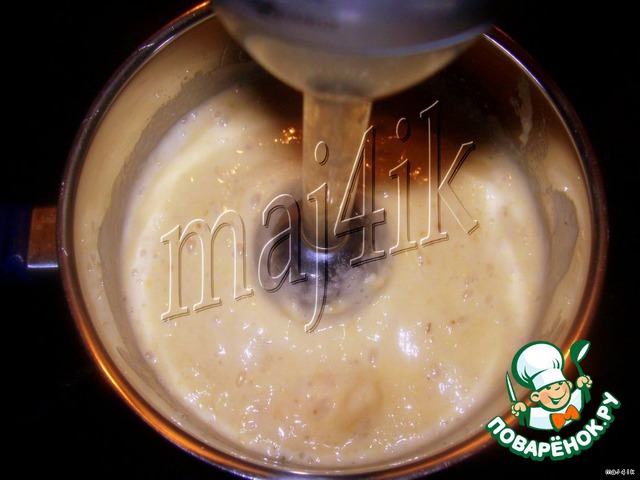 Добавить мёд и банановое пюре - хорошенько перемешать.