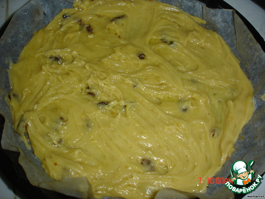 Яйца взбить с сахаром, добавить масло, мед, изюм, прогреть на водяной бане до полного растворения, непрерывно помешивая. Снять с огня, добавить муку, разрыхлитель, замесить вязкое тесто и оставить в холодильникe. За ночь мука набухнет, тесто станет немного плотнее. На лист пекарской бумаги намазывеем тесто и выпекаем 10-12 мин. при Т180*