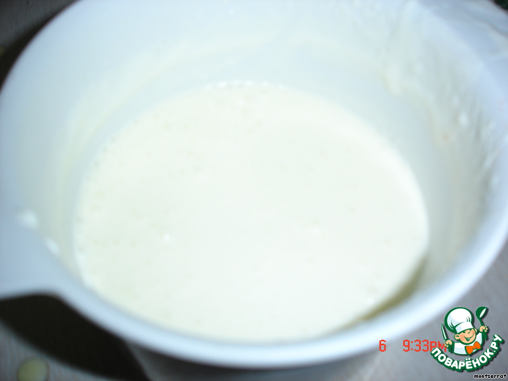 Пока коржи остывают, делаем сливочное желе: желатин предварительно замачиваем в воде, 100 мл сливок нагреваем с сахаром, добавляем желатин и размешиваем смесь до полного растворения желатина. Остальные сливки взбиваем холодными и добавляем тонкой струйкой растворенный желатин. Делаем это накануне сборки торта, чтобы сливки с желатином не застыли.