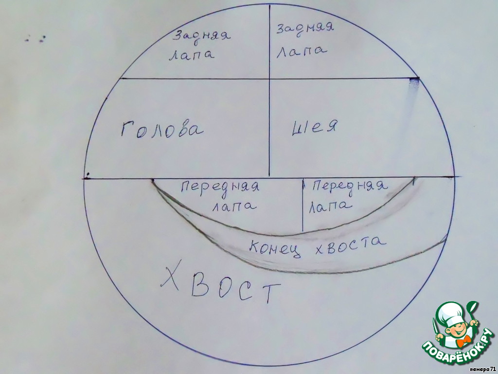 Второй корж (большего диаметра) разрезать по этому рисунку.