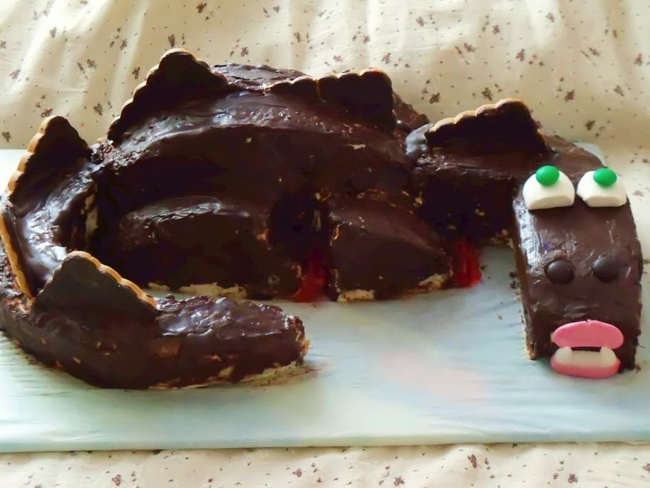 Шоколад растопить на водяной бане и смазать им дракона (правда, получилось у меня немного корявенько)