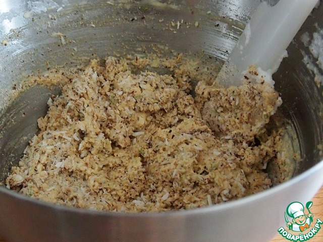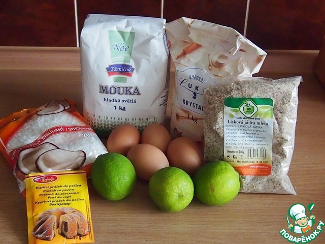 Просеянную муку, разрыхлитель теста, ореховую муку, кокосовую стружку и цедру с двух лаймов смешать в миске.