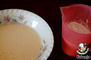 1. Готовим бисквиты. Яйца и сахар (75 г) взбивать миксером 4-5 минут.