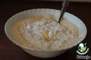 Добавить муку и перемешать (если есть готовые бисквиты, брать с запасом - 2-3 упаковки).