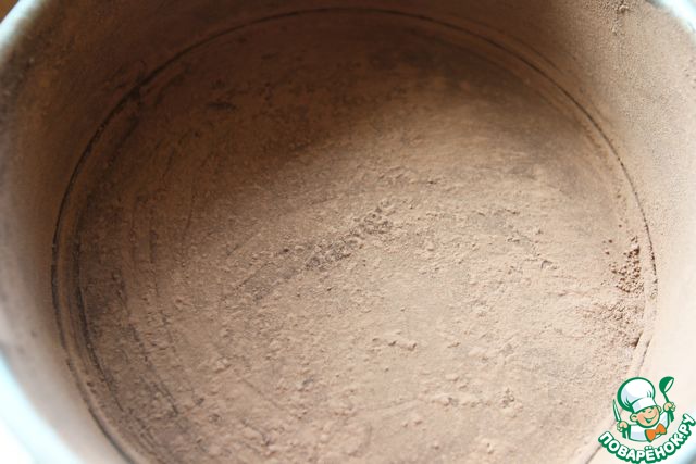 В большой и глубокой миске смешиваем какао, муку, сахар, соду, пекарский порошок и соль.