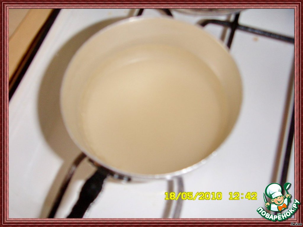 Из 10 ст.л. [b][i](для инфор..1 ст.л.= 12 гр.)[/i][/b] сахара и воды сварить сироп (238F).